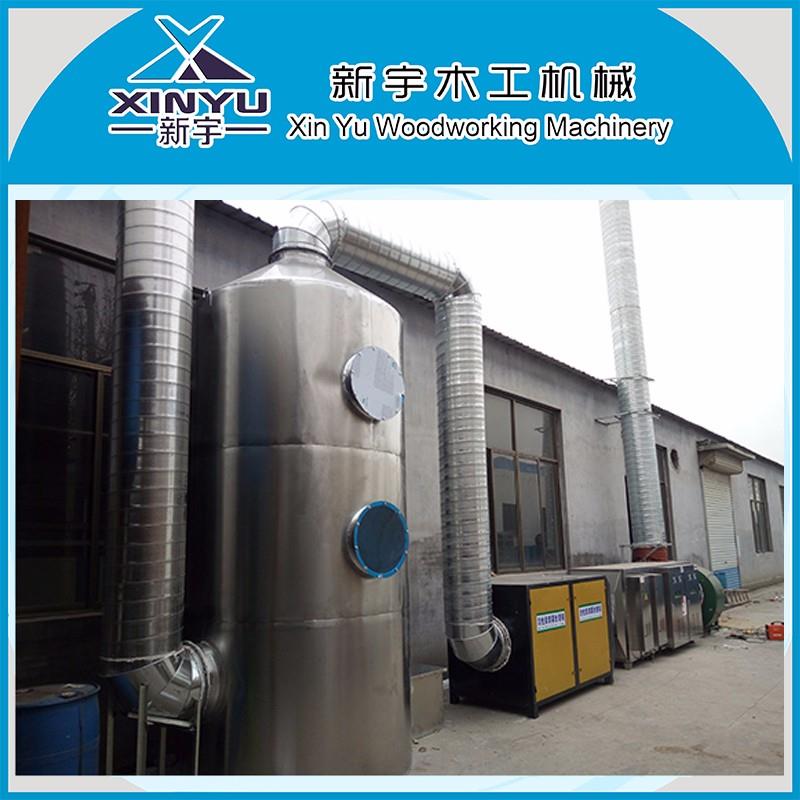 工作原理:帶有粉塵,有害廢氣、煙霧的氣體從吸塵吸氣管道進入旋風填料噴啉塔,經過不銹鋼旋風板兩次改變風向使氣體在塔內來回旋轉,通過兩種不同的填料層,再經過兩次的噴淋,使粉塵和有害氣體,及煙霧的有效的分解稀釋,再通過除霧層除去噴淋所帶來的水霧,利用風機從排風管道排除,根據有害氣體和煙霧的濃度:加上等離子光氧等電子設備配套使用,這樣處理效果會更佳。